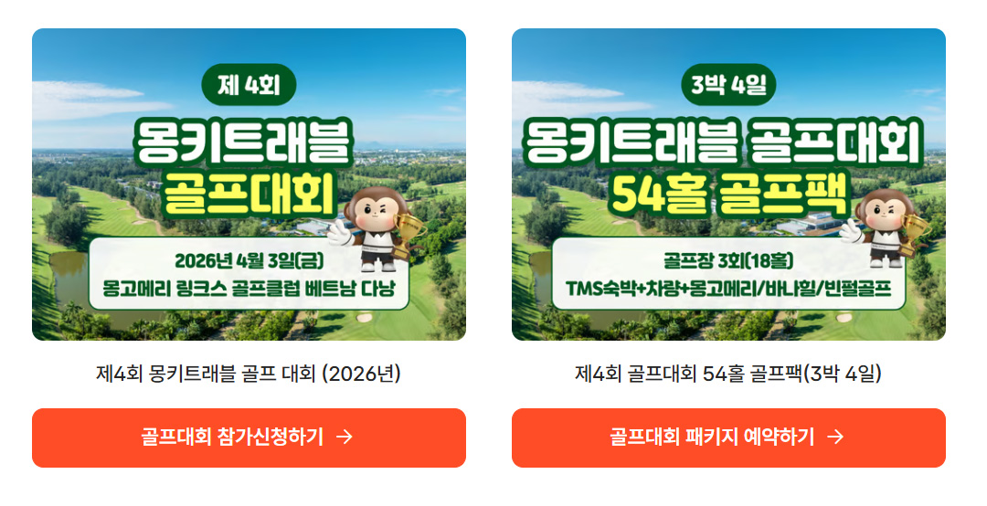 이와함께 몽키트랩블은 한국에서 참가하는 고객들을 위해 제4회 몽키트래블 골프대회 참가 3색골프상품(TMS숙박+54홀+차량 / 몽고메리/바나힐/빈펄) 패키지 상품도 출시해 판매하고 있다.