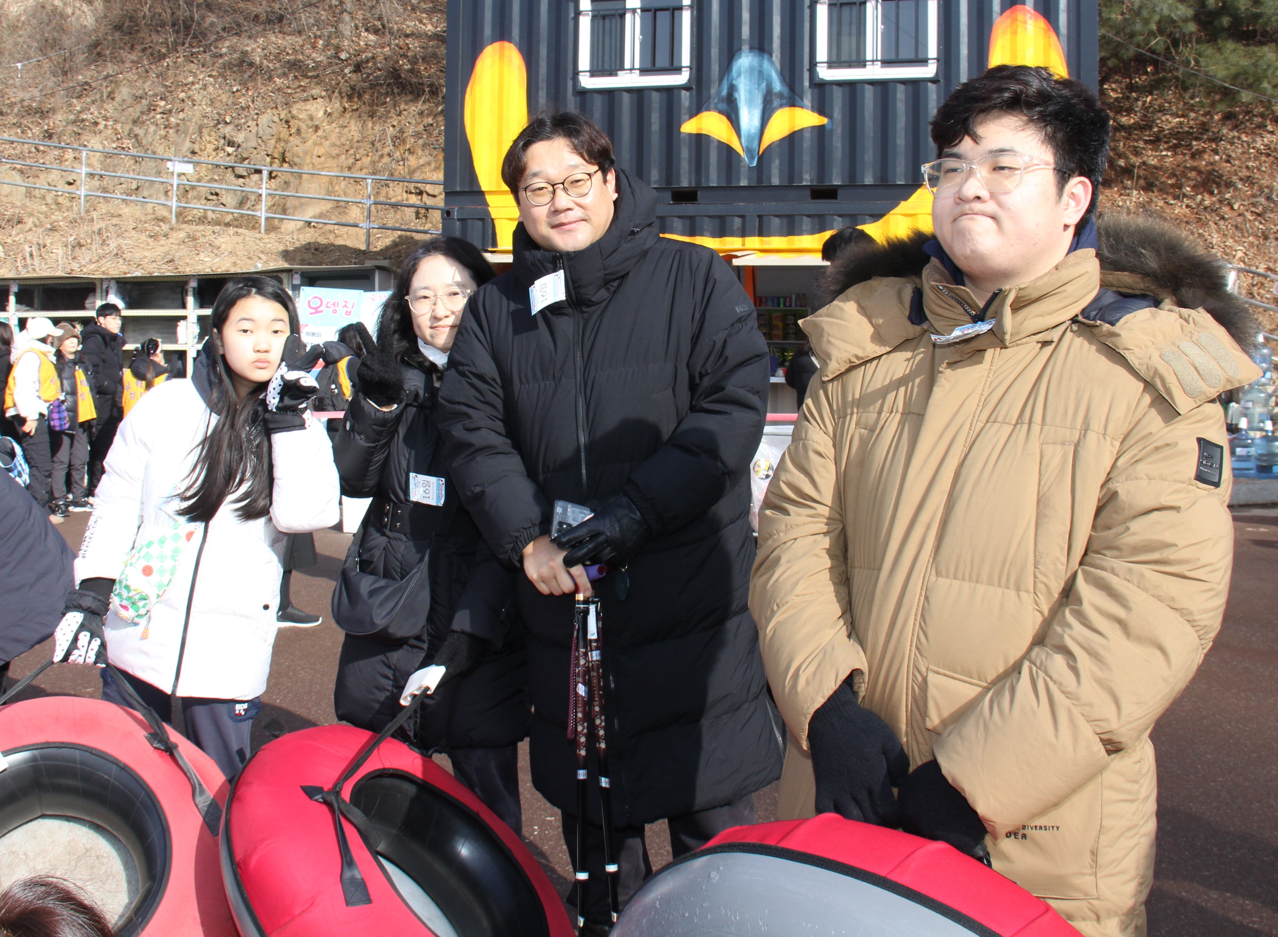 양주눈꽃축제장 입구에서 환호성을 외치는 강북구장애우와 가족들....