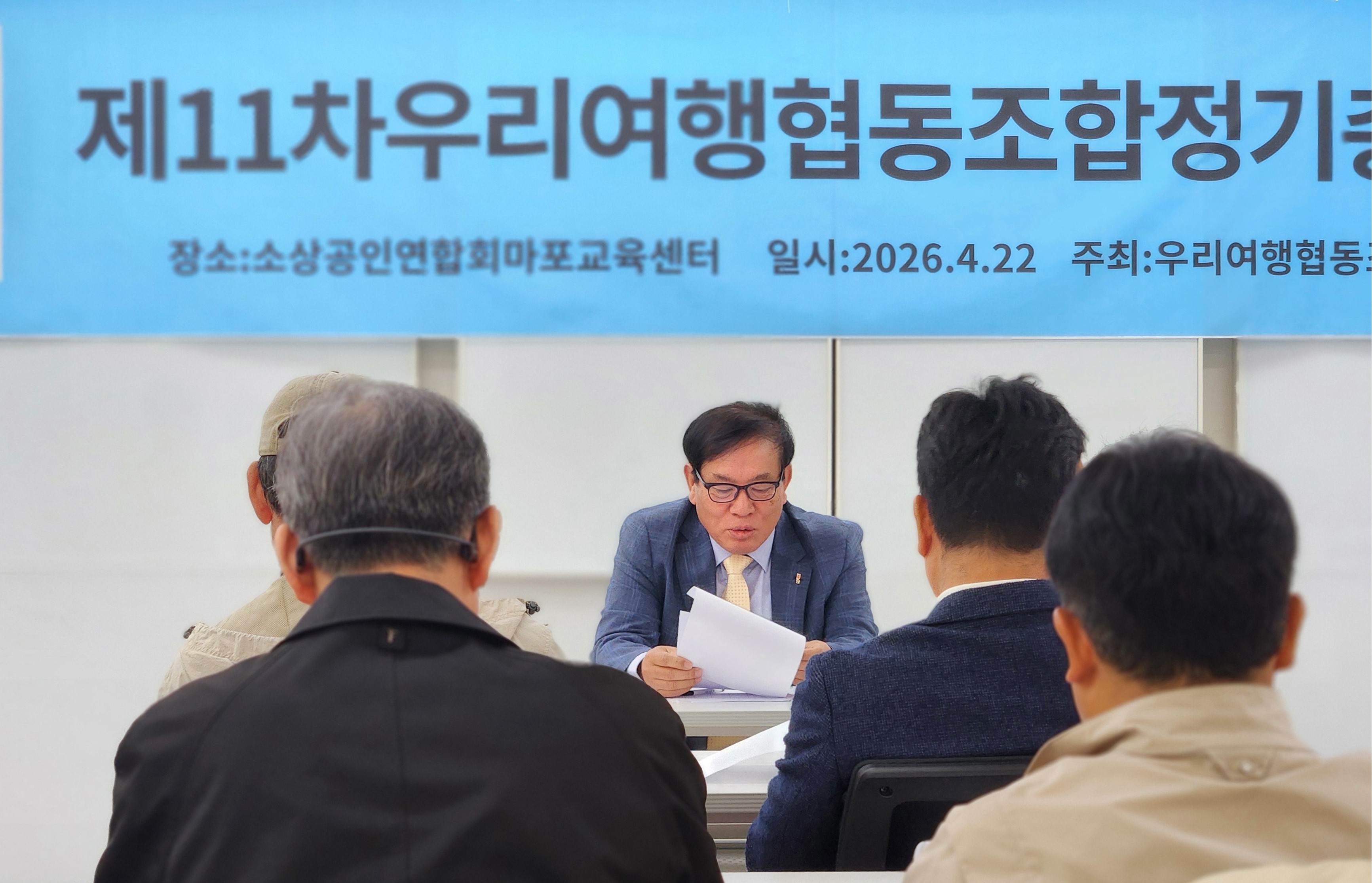 우리여행협동조합(이사장 권병관)이 4월 22일 마포구 고려빌딩 소상공인 연합회에서 총 조합원 50명 중 32명이 참석한 가운데 ‘제11차 정기총회’를 열고 조직 운영 개선과 함께 향후 사업 방향을 확정했다.