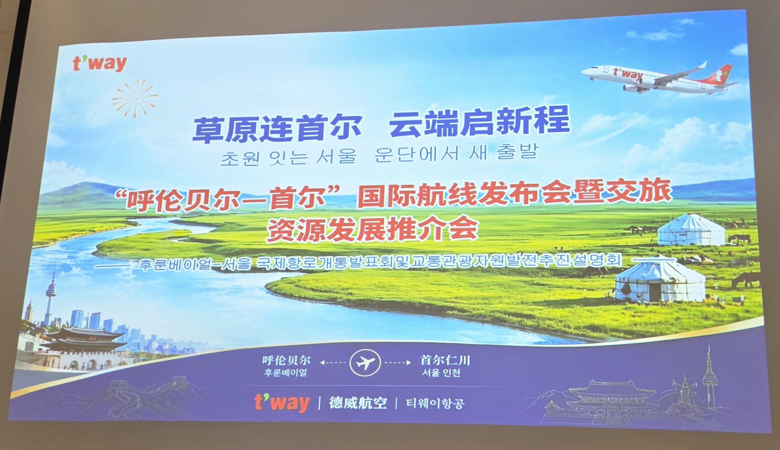 후룬베이얼시는 오는 6월 20일부터 9월 2일까지 총 22항차 티웨이항공 후룬베이얼 전세기 운항을 확정하고, 지난 4월 27일 포포인츠 바이 쉐라톤조선 서울 명동에서 여행사, 언론사 초청 후룬베이얼시 전세기 노선 확정을 알리고, 주요 관광자원에 대한 설명회를 개최했다.