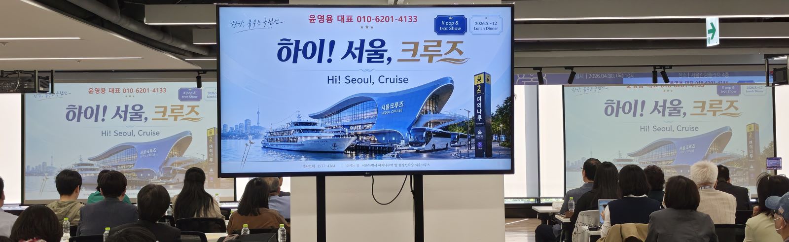 윤영용 케이엔터프라이즈 대표는 “외국인관광객들이 한국에서 K팝 공연을 보고 싶어 하지만, 실제로 단체관광 일정에 넣기는 쉽지 않다. 한강에서 멋진 야경을 즐기며 서울유람선에서 저녁식사와 K팝 트로트 공연을 함께 즐길 수 있는 디너크루즈 상품을 준비했다”며“단체행사는 250명까지 가능하며, 탑승은 여의도 선착장에서 출발해 2시간 코스로 진행된다”고 설명했다.