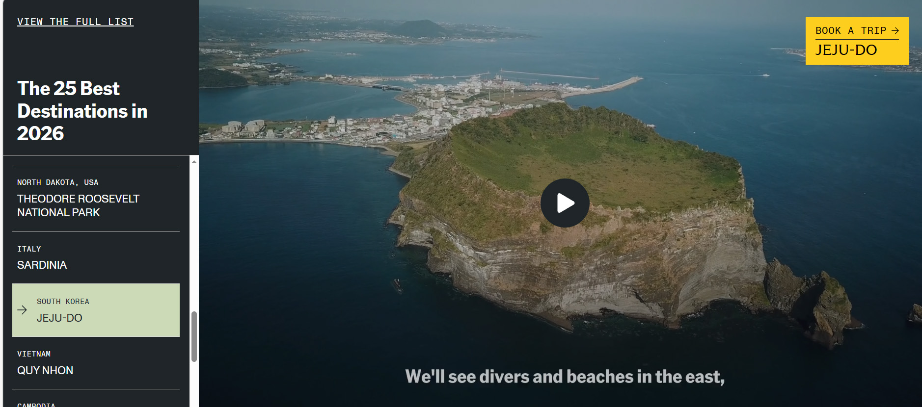 제주가 전 세계 여행자들의 필독서로 통하는 「론리 플래닛(Lonely Planet)」이 선정한 ‘2026년 반드시 방문해야 할 세계 25대 여행지’에 이름을 올렸다.