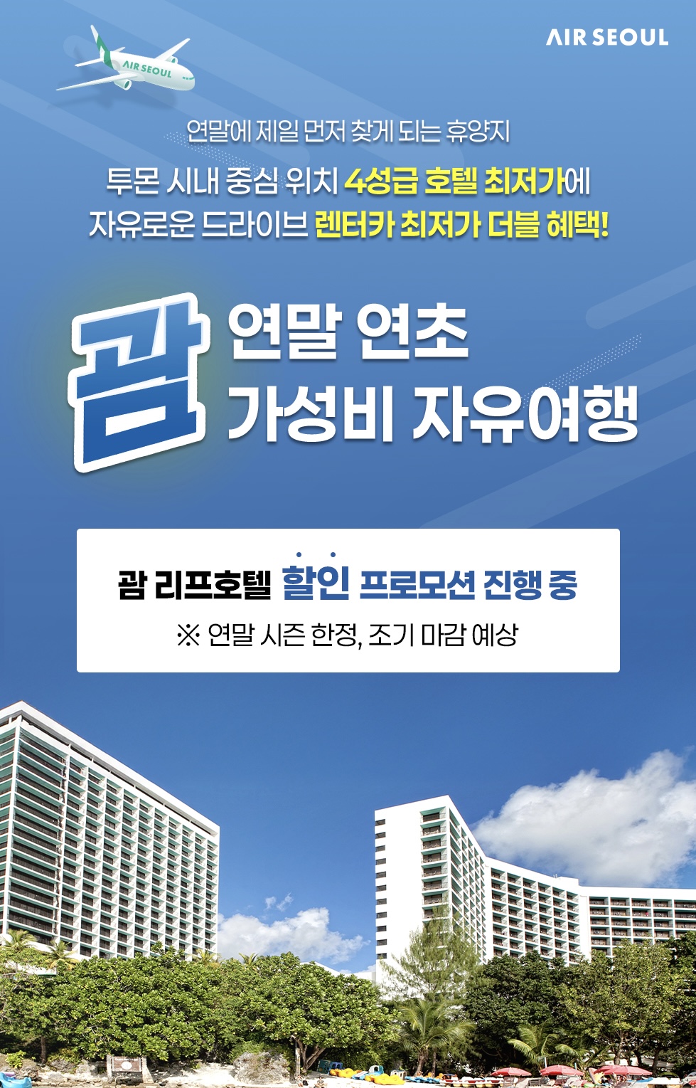 에어서울, 따뜻한 괌 휴양으로 새해 여행 제안… 호텔·렌터카 제휴 혜택 제공